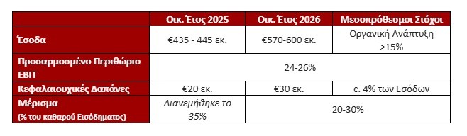 Με την εταιρία να βρίσκεται σε τροχιά επίτευξης ιστορικών εσόδων και κερδών για το Οικονομικό Έτος 2025 και με ευνοϊκές συνθήκες δυναμικής στην αγορά, εισερχόμαστε στο 2026 με ισχυρή ώθηση και δεν αναμένουμε σημάδια επιβράδυνσης στο άμεσο μέλλον.