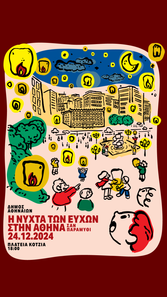 Να περάσουν την παραμονή των Χριστουγέννων από την πλατεία Κοτζιά για να μετέχουν στη «Νύχτα των Ευχών», καλεί τους κατοίκους και τους επισκέπτες ο Δήμος Αθηναίων.