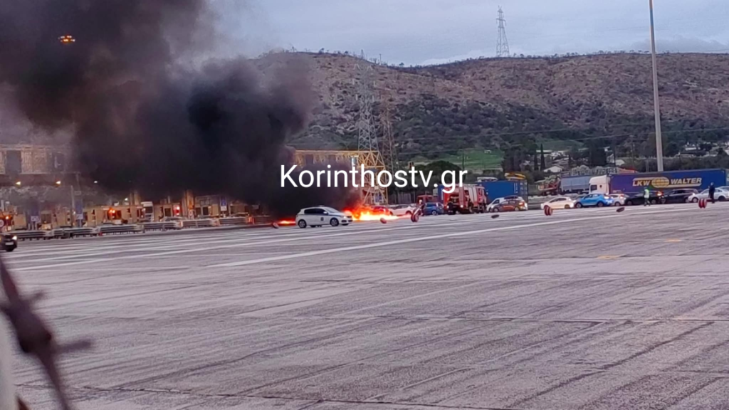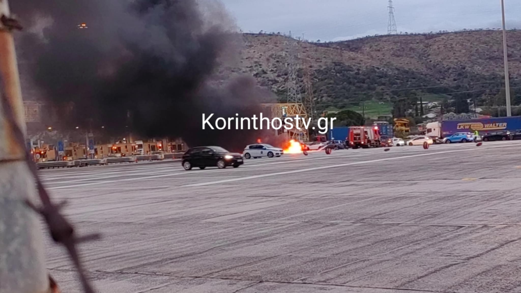 Στις φλόγες τυλίχθηκε αγροτικό αυτοκίνητο στην Εθνική Οδό Αθηνών – Κορίνθου στο ύψος των διοδίων του Καλαμακίου.