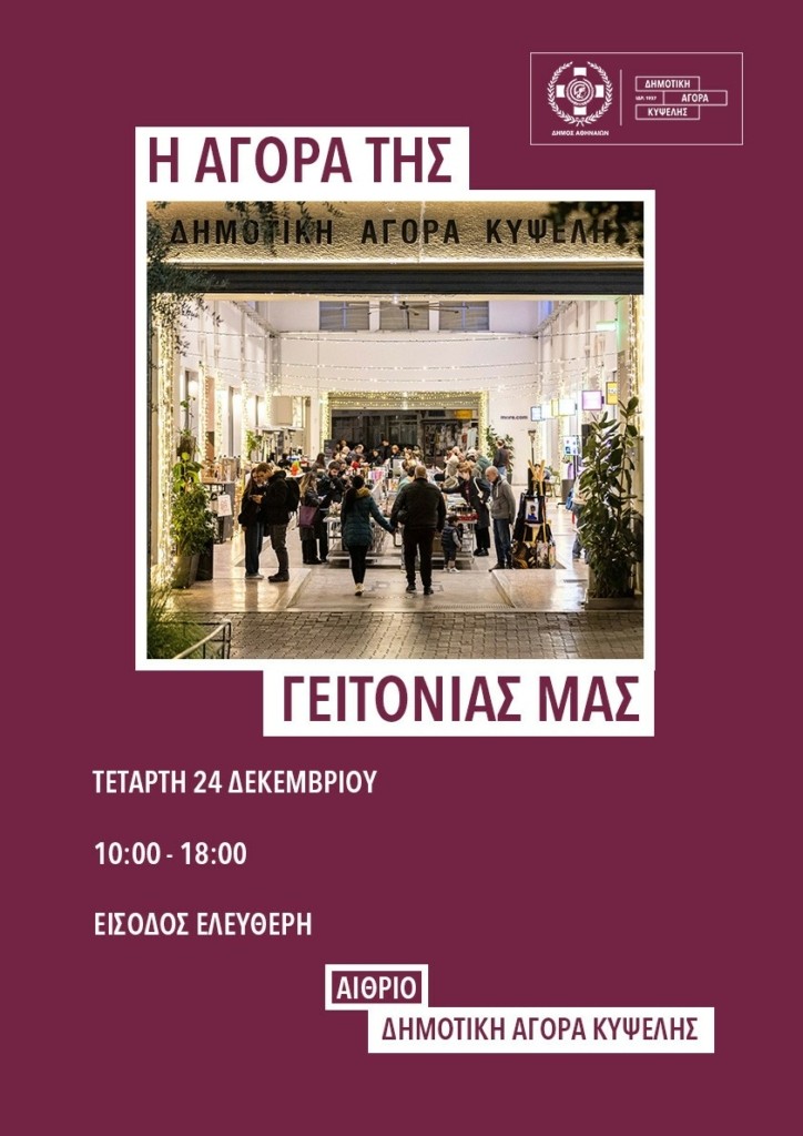 «Η Αγορά της Γειτονιάς μας!» σας περιμένει την Τετάρτη 24 Δεκεμβρίου, από τις 10:00 έως τις