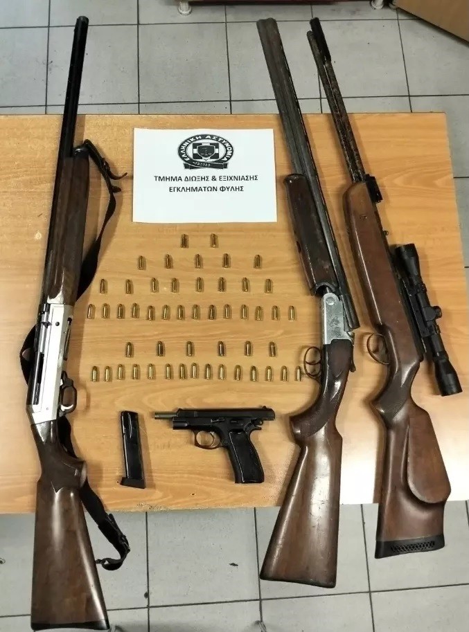 Για την υπόθεση συνελήφθησαν 3 άτομα, 71χρονος, 48χρονος και 44χρονη και σε βάρος τους σχηματίστηκε δικογραφία για παράβαση του νόμου περί όπλων.