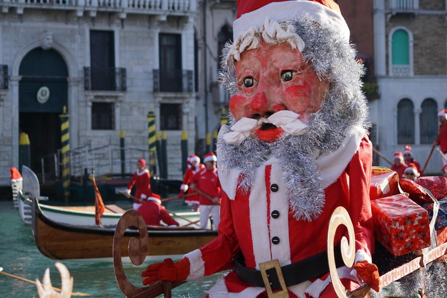 Όποιος βρισκόταν στα κανάλια της Βενετίας τις προηγούμενες μέρες σίγουρα θα είδε ένα από τα πιο ιδιαίτερα γιορτινά θέαμα της ζωής του αφού κάτοικοι της πόλης ντύθηκαν Άγιοι Βασίληδες, μπήκαν στις γόνδολες τους και έκαναν βαρκάδα στα κανάλια της πόλης.