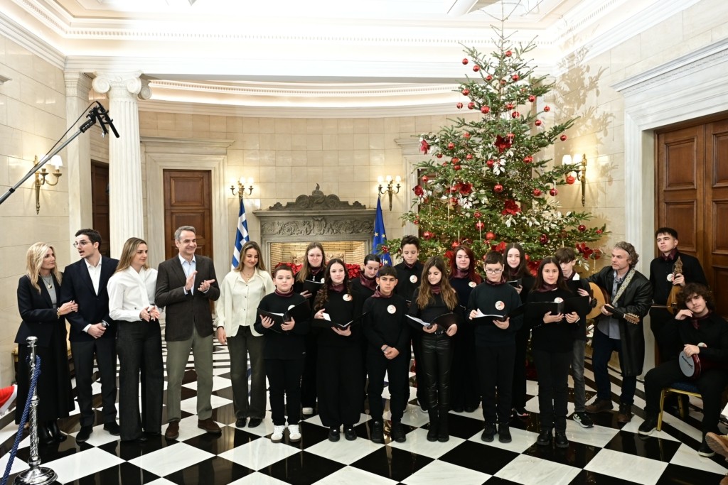 Ο πρωθυπουργός Κυριάκος Μητσοτάκης άκουσε τα κάλαντα των Χριστουγέννων στο Μέγαρο Μαξίμου από το Μουσικό Σχολείο Αλίμου και από τον Πολιτιστικό Σύλλογο Ερέτριας «Κωνσταντίνος Κανάρης».