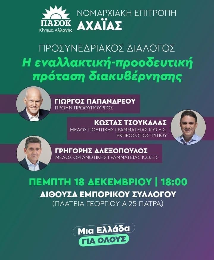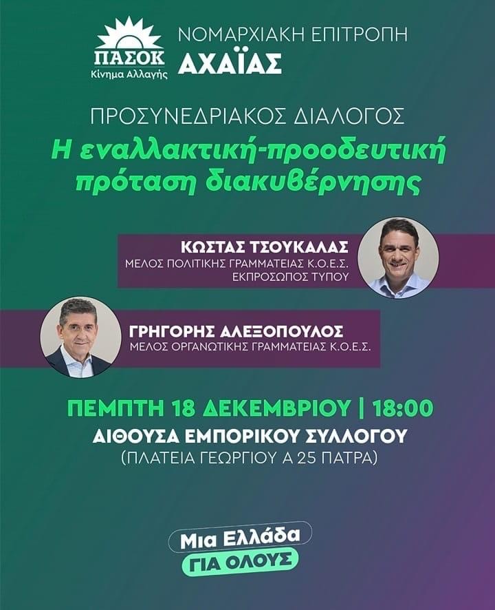 Στο πλαίσιο εκδήλωσης για τον προσυνεδριακό διάλογο του ΠΑΣΟΚ είδε το όνομα του όπως ήταν λογικό να φιγουράρει πρώτο στην αφίσα με τους ομιλητές και ακολουθούσαν ο εκπρόσωπος τύπου Κώστας Τσουκαλάς και το μέλος της οργανωτικής γραμματείας της ΚΟΕΣ του ΠΑΣΟΚ Γρηγόρης Αλεξόπουλος.