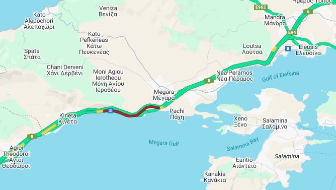 Καραμπόλα με την εμπλοκή 6 οχημάτων σημειώθηκε έξω από τα Μέγαρα, στην έξοδο Πάχης.