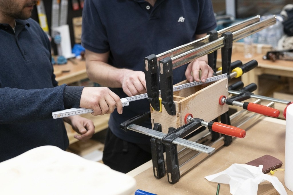Μαθαίνουμε τα βασικά της ξυλουργικής, αλλά δεν μένουμε στη θεωρία. Από το πρώτο μάθημα, πιάνουμε δουλειά με εργαλεία χειρός, με σκοπό την πρακτική εξάσκηση και στο τέλος του σεμιναρίου ο καθένας παίρνει το δικό του σκαμπό, φτιαγμένο από τα χέρια του.