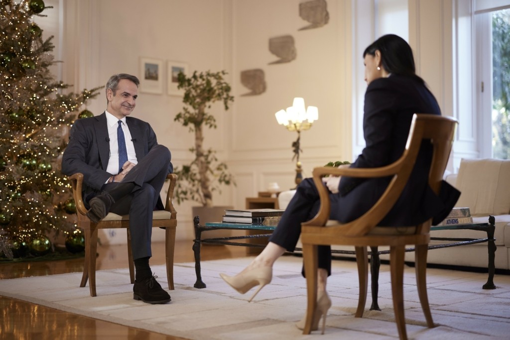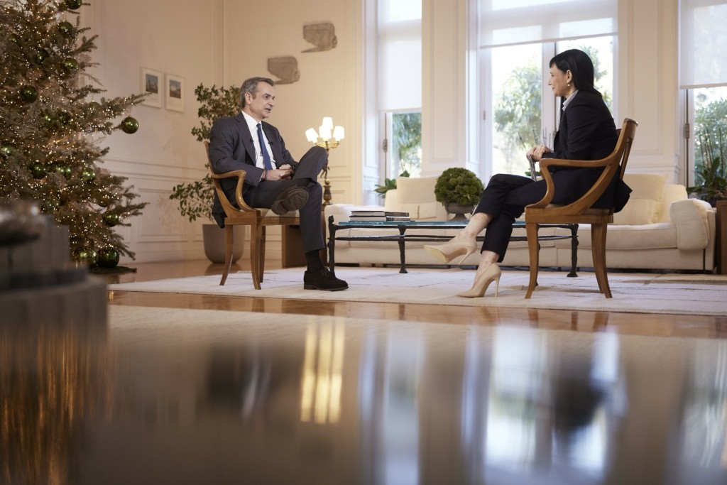 Κυριάκος Μητσοτάκης: Εγώ να σας ευχαριστήσω, να ευχηθώ σε εσάς και στους τηλεθεατές σας μία καλή χρονιά, με υγεία και χαμόγελα και χαρά σε εσάς και στις οικογένειές σας.