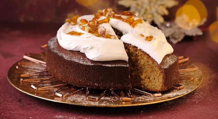 7.Ετοιμάστε το γλάσο royal icing. Χτυπήστε το ασπράδι αυγού με το μίξερ μέχρι να αφρατέψει, ρίχνοντας σταδιακά τη μισή ποσότητα αχνοζάχαρης. Προσθέστε τις σταγόνες λεμονιού και την υπόλοιπη άχνη, καλύψτε την πίτα με το γλάσο και αφήστε το γλάσο να στεγνώσει και να σφίξει.