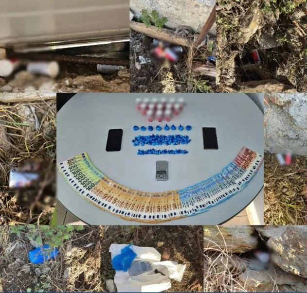 Ακολούθησαν έρευνες στην οικία του, καθώς και περιμετρικά αυτής, όπου βρέθηκε χρηματικό ποσό, προερχόμενο από διακίνηση ναρκωτικών, καθώς και επιπλέον 104 μικροδέματα κοκαΐνης.