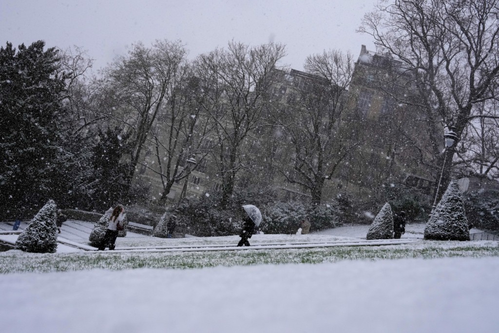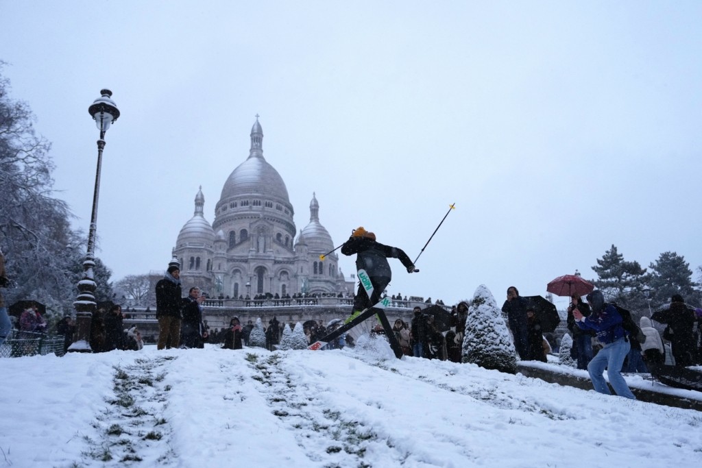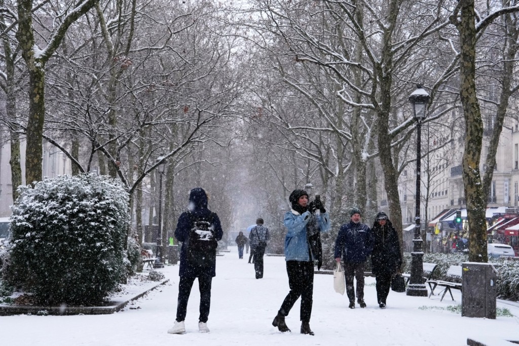 Στα λευκά ντύθηκε το Παρίσι, από το κύμα κακοκαιρίας που πλήττει τη βόρεια Γαλλία με πυκνή χιονόπτωση.