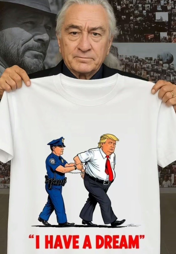 Τώρα, η φωτογραφία με τον διάσημο ηθοποιό να κρατά ένα μπλουζάκι που απεικονίζει τη σύλληψη του Τραμπ με τη λεζάντα «έχω ένα όνειρο» που είναι ο τίτλος της ιστορικής ομιλίας του Μάρτιν Λούθερ Κίνγκ στη Διαδήλωση στην Ουάσινγκτον για την Εργασία και την Ελευθερία στις 28 Αυγούστου 1963, έχει γίνει viral…