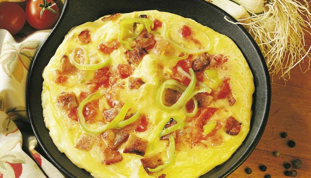Μια πεντανόστιμη και χορταστική ομελέτα με μπέικον και πράσα που μπορείτε να σερβίρετε ως απλό δείπνο ή μεσημεριανό γεύμα με τη συνοδεία πράσινης σαλάτας και φρέσκου χωριάτικου ψωμιού.