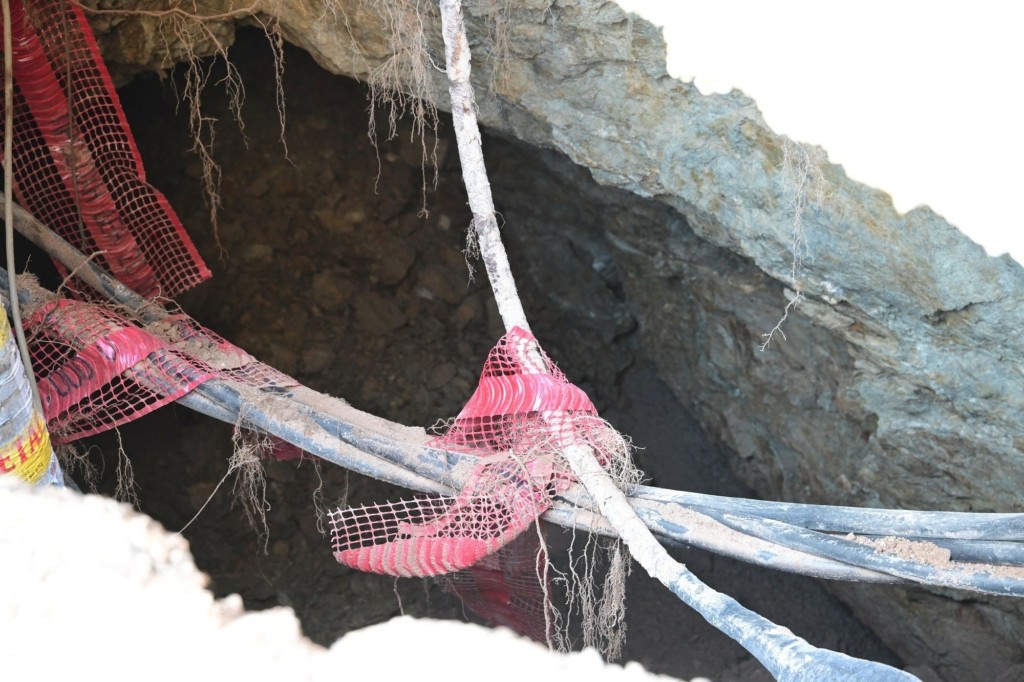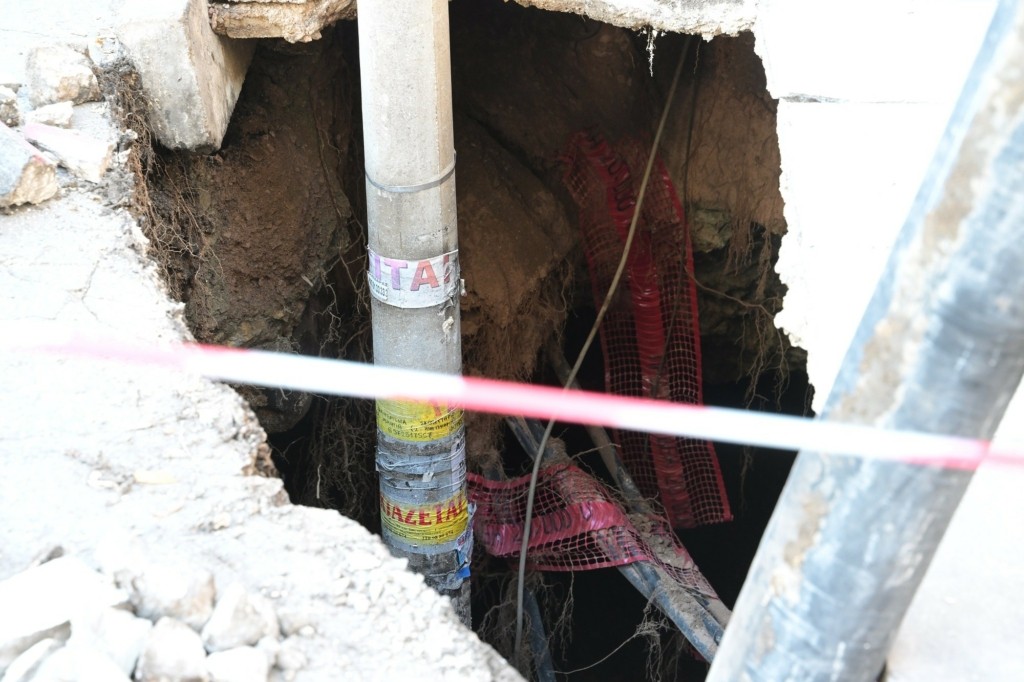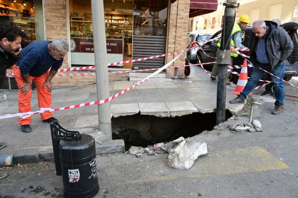 Η τρύπα έχει πέντε μέτρα εμβαδόν και σημαντικό βάθος, ενώ την ώρα που άνοιξε «ρούφηξε» και μια κολώνα φωτισμού.