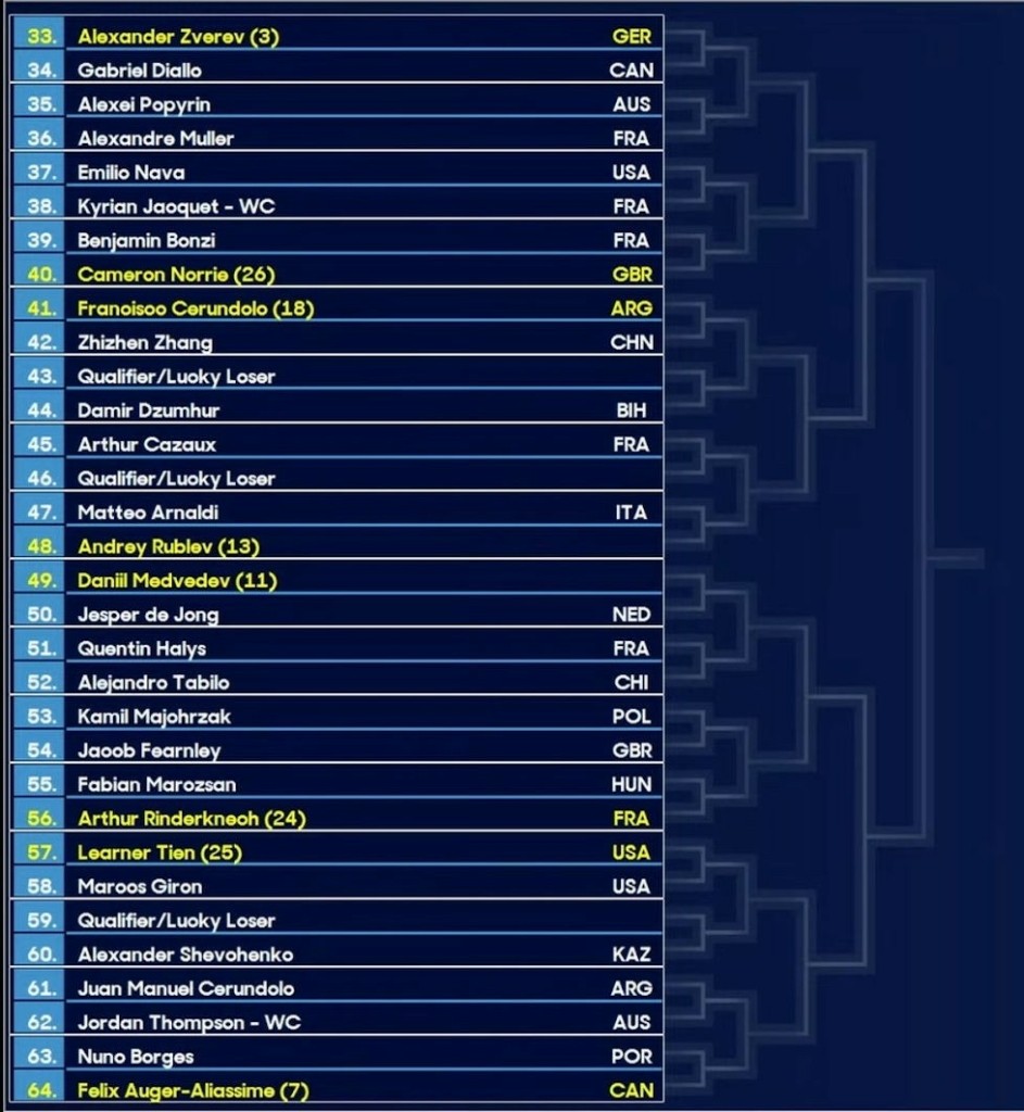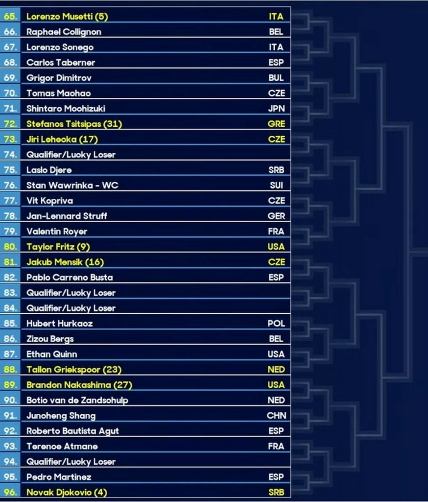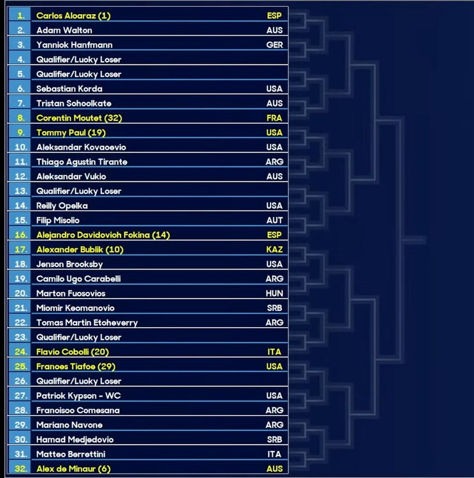 Στα προημιτελικά πέφτει πάνω στον Τζόκοβιτς αν φτάσουν και οι δύο μέχρι εκεί, ενώ στα ημιτελικά λογικά θα είναι ο κάτοχος του τίτλου, Γιάνικ Σίνερ.