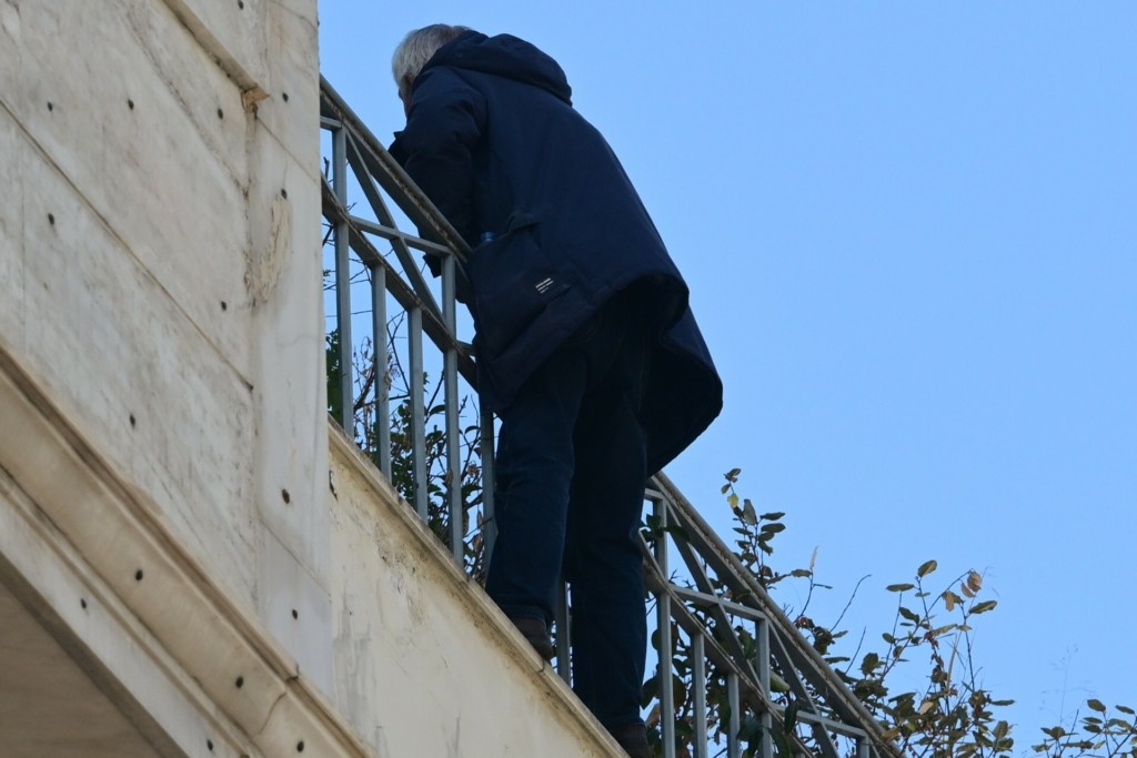 Σύμφωνα με τις πρώτες πληροφορίες, ο άνδρας κρέμεται από τα κάγκελα, σε ύψος που εκτιμάται ότι αντιστοιχεί σε πέμπτο όροφο.