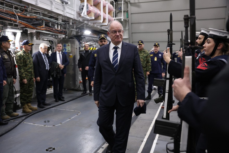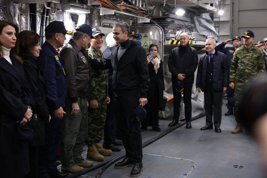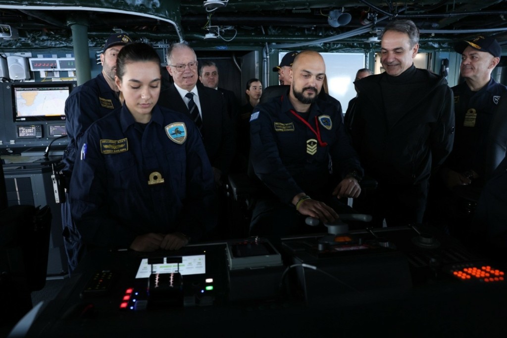 Στη φρεγάτα Κίμων βρέθηκαν ο Πρόεδρος της Δημοκρατίας, Κωνσταντίνος Τασούλας, ο πρωθυπουργός, Κυριάκος Μητσοτάκης και ο υπουργός Εθνικής Άμυνας Νίκος Δένδιας που συνομίλησαν με το πλήρωμα και βρέθηκαν στη γέφυρα του πλοίου.