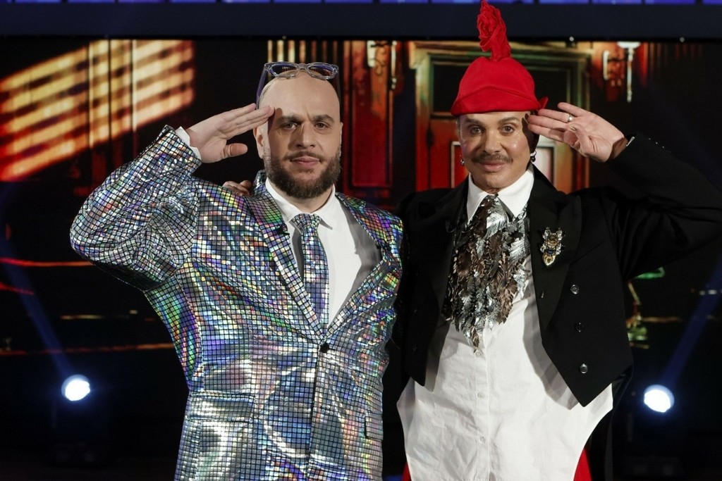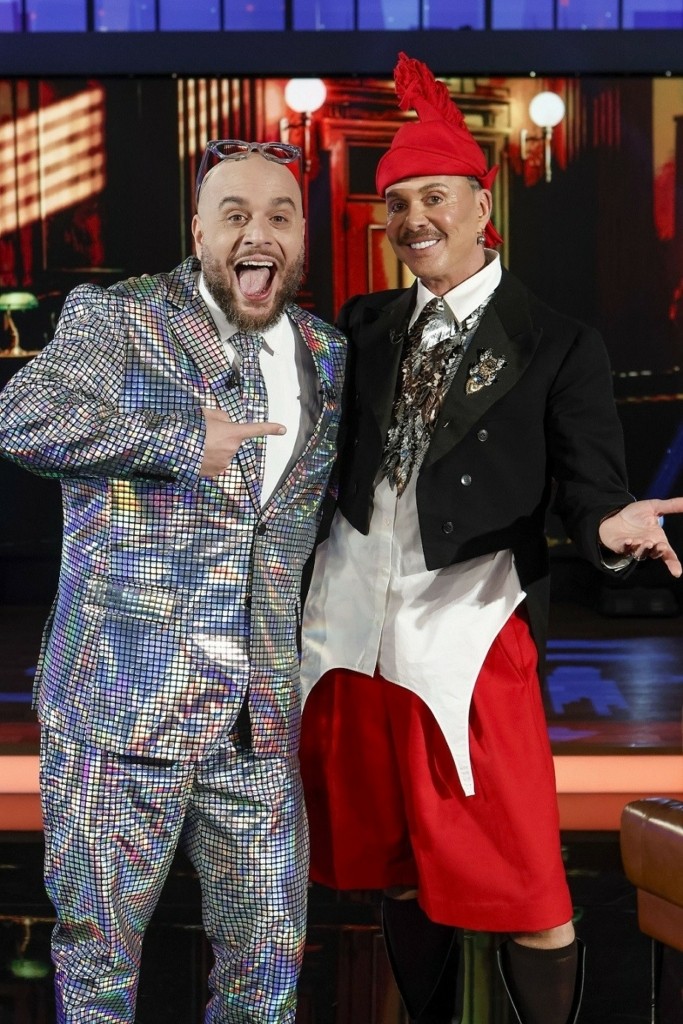 Ο Γαβαλάς συνηθισμένα ντυμένος, με το ξεχωριστό στιλ του, έρχεται στο πλατό για να παραδώσει μαθήματα μόδας στον παρουσιαστή.