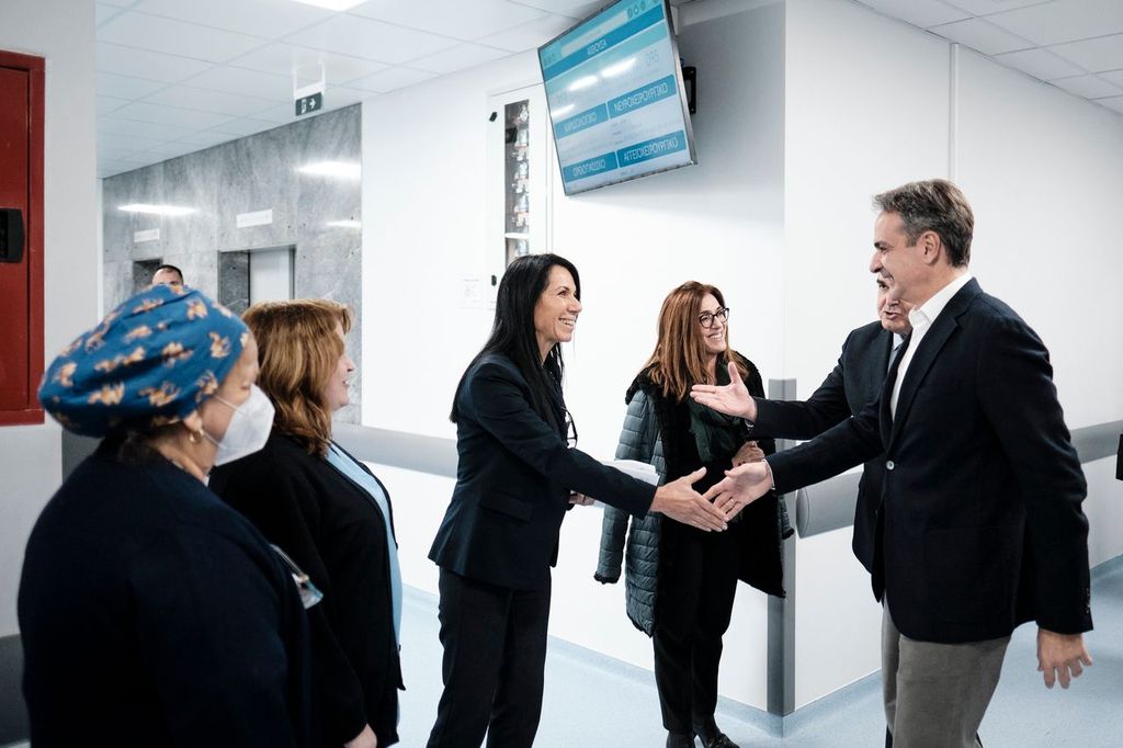 Ο Κυριάκος Μητσοτάκης είχε την ευκαιρία να συνομιλήσει με το ιατρικό, νοσηλευτικό και διοικητικό προσωπικό καθώς και με ασθενείς για τις μεταρρυθμίσεις και τα έργα που υλοποιούνται στο Εθνικό Σύστημα Υγείας για την αναβάθμιση των παρεχόμενων υπηρεσιών, τη βελτίωση της εξυπηρέτησης των πολιτών καθώς και των συνθηκών εργασίας.