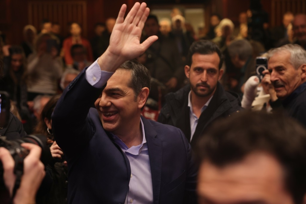 Κόσμος πολύς και θερμά υποδέχθηκε τον πρώην πρωθυπουργό και έξω και μέσα στην αίθουσα.