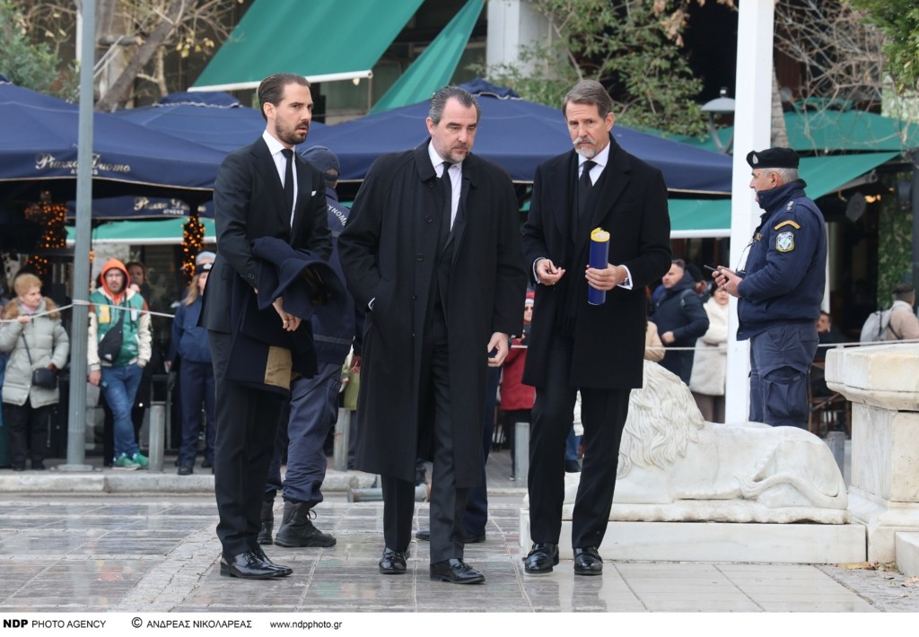 Το φέρετρο με τη σορό της αδελφής του τέως βασιλιά Κωνσταντίνου, καλυμμένο με την ελληνική σημαία, έφτασε από τις 8 το πρωί στο παρεκκλήσι της Μητρόπολης Αθηνών, όπου και παρέμεινε έως τις 10.30 με την ολοκλήρωση του λαϊκού προσκυνήματος.