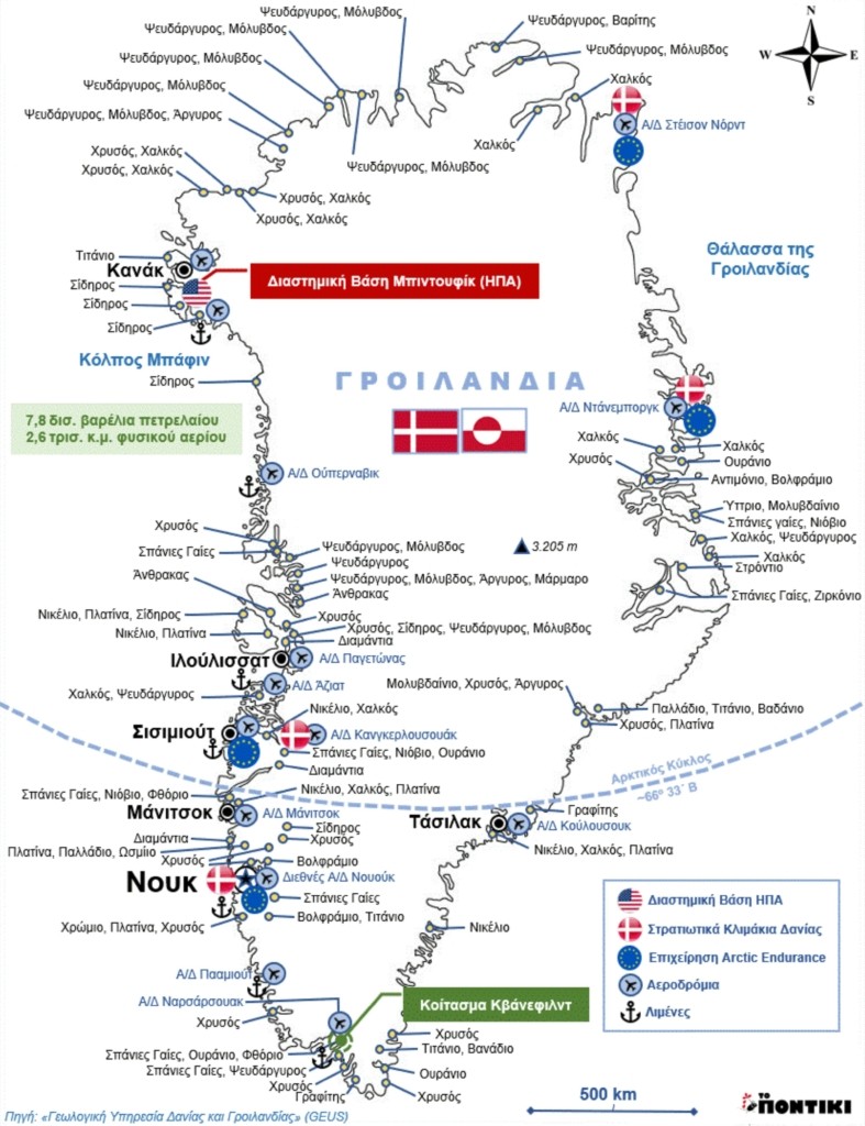 Σήμερα, με το λιώσιμο των πάγων, το άνοιγμα νέων θαλάσσιων οδών, τον ανταγωνισμό για σπάνιες πρώτες ύλες και την επιστροφή της στρατηγικής αντιπαράθεσης μεγάλων δυνάμεων, η Γροιλανδία επανέρχεται στον ρόλο που ιστορικά είχε ως «κόμβος στρατηγικής ισχύος».