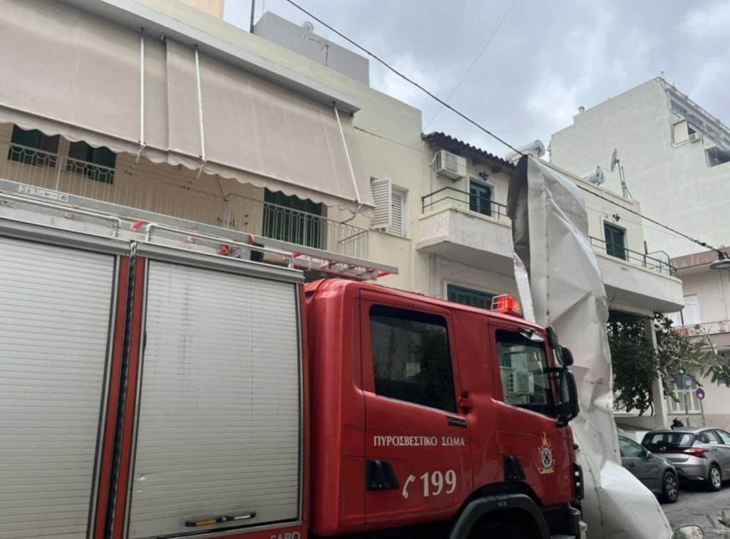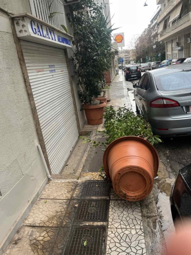 Από την ένταση των ανέμων εκτοξεύτηκαν αντικείμενα από μπαλκόνια που έκαναν τη κατάσταση πολύ επικίνδυνη.