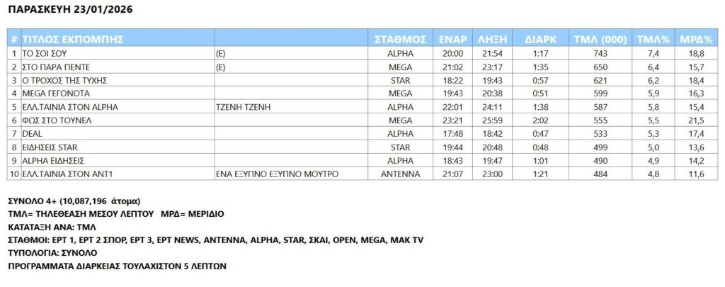Με χαρακτηριστικά εντελώς διαφορετικά στη ζώνη υψηλής τηλεθέασης η τελευταία ημέρα του περασμένου 5ήμερου, σα να «υπαγόρευε» τις επιλογές των τηλεθεατών.