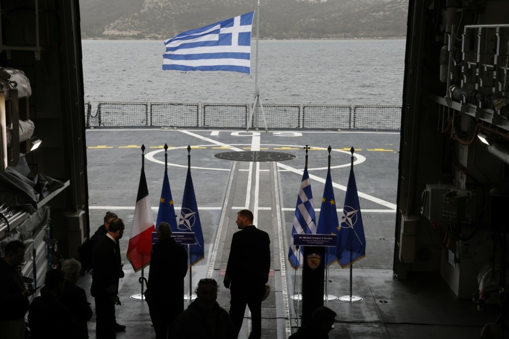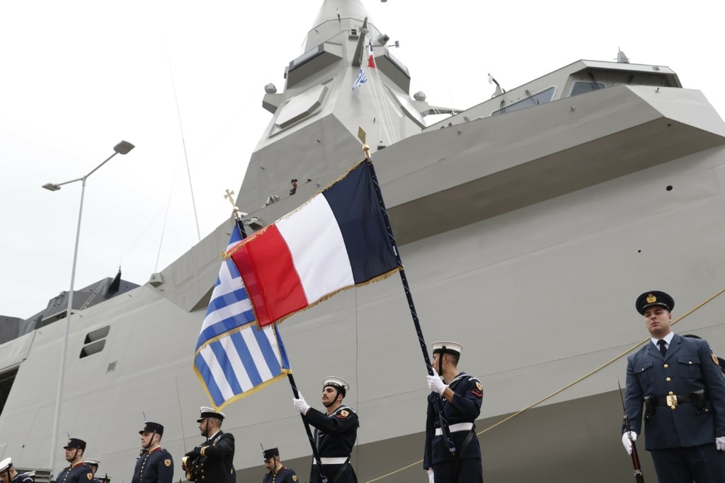 Η συνάντηση των δύο υπουργών πραγματοποιήθηκε επί της φρεγάτας «Κίμων» της πρώτης ελληνικής Belharra.