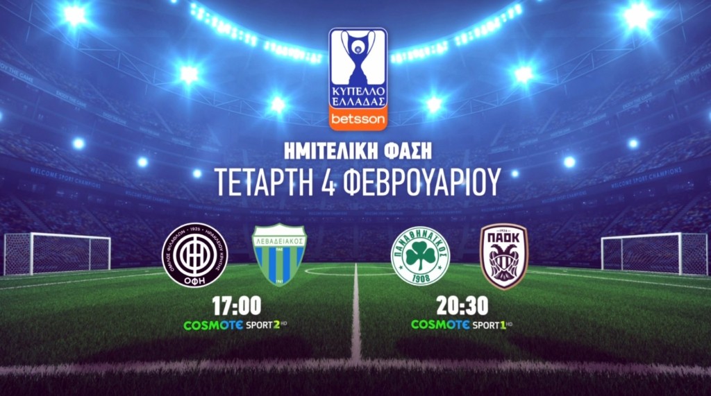 17:00 ΟΦΗ-Λεβαδειακός, Κύπελλο Ελλάδας Betsson, Ημιτελική Φάση, 1η Αγωνιστική, COSMOTE SPORT 2HD