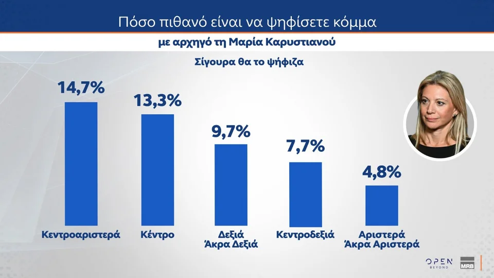Την ίδια ώρα, επικράτηση της Μαρίας Καρυστιανού και στους αναποφάσιστους δείχνει το δεύτερο μέρος της δημοσκόπησης της MRB.