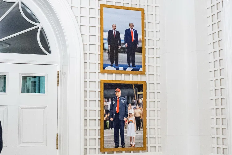 Μια καδραρισμένη φωτογραφία του Προέδρου Τραμπ να στέκεται με τον Ρώσο πρόεδρο Βλαντιμίρ Πούτιν κρέμεται στον Λευκό Οίκο, όπως δείχνουν φωτογραφίες που τραβήχτηκαν μέσα σε μια πρόσφατα ανακαινισμένη αίθουσα.
