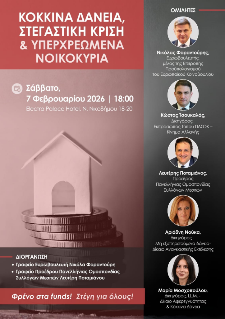 Εξαιρετικά πολιτικό ενδιαφέρον έχει επίσης αυτή που ορίστηκε για τις 7 Φεβρουαρίου με θέμα τα κόκκινα δάνεια. Μαζί με τον Φαραντούρη θα είναι και ο Κώστας Τσουκαλάς, ο εκπρόσωπος τύπου του ΠΑΣΟΚ ο οποίος κάνει επαφές αυτό το διάστημα με στελέχη της κεντροαριστεράς, προκειμένου να διερευνήσει περιθώρια ένταξής τους ή συνεργασίας με το ΠΑΣΟΚ.
