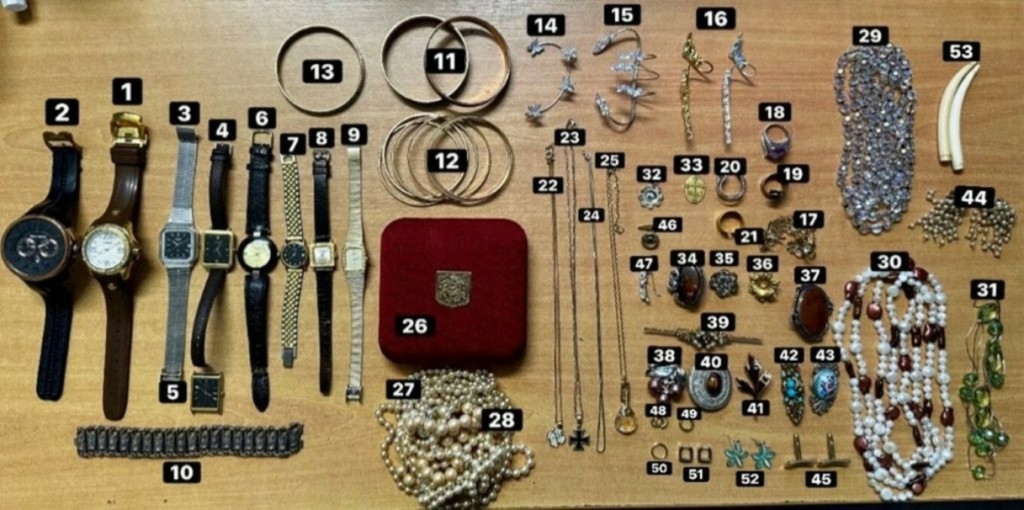 Κατά τη διάρκεια ελέγχων που πραγματοποιήθηκαν τόσο στην κατοχή της όσο και στο σπίτι της, βρέθηκαν και κατασχέθηκαν δεκάδες κοσμήματα, ρολόγια καθώς και χρηματικό ποσό που, σύμφωνα με τις Αρχές, είχε αφαιρεθεί λίγο νωρίτερα.