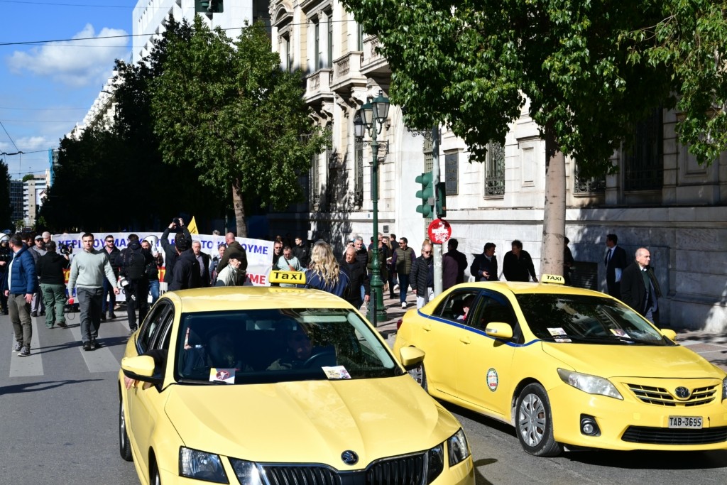 Με πορεία προς το Μέγαρο Μαξίμου και με προειδοποίηση για νέα κλιμάκωση των κινητοποιήσεων του κλάδου βρίσκεται σε εξέλιξη η 48ωρη απεργία των αυτοκινητιστών ταξί που προκήρυξε για σήμερα και αύριο το ΣΑΤΑ.