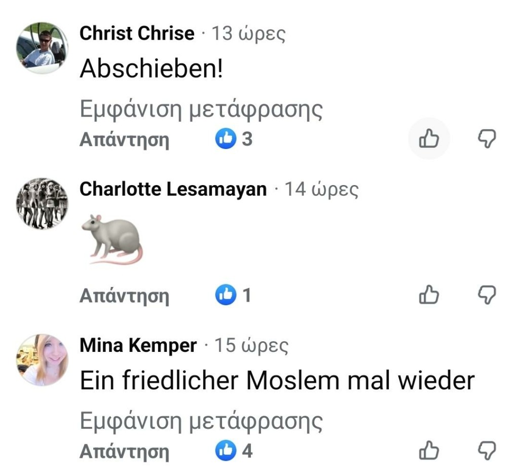 Εν τω μεταξύ, στα social media με αφορμή το αποτρόπαιο περιστατικό ξεχύθηκε ρατσιστικός οχετός, με δεκάδες ακροδεξιούς λογαριασμούς να απαιτούν την απέλαση όλων των μεταναστών από τη Γερμανία και πολλούς περισσότερους να ζητούν την αύξηση των μέτρων ασφαλείας στα μέσα μαζικής μεταφοράς, όπως φαίνεται ενδεικτικά παρακάτω.