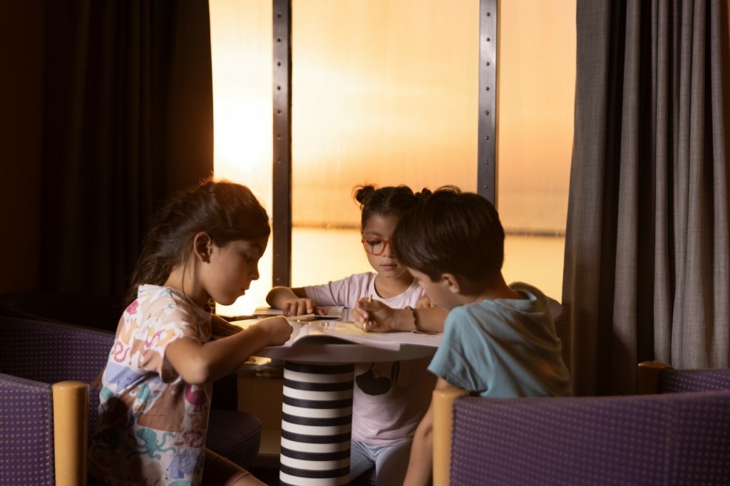Και για τους μικρούς μας φίλους, στη reception τους περιμένει μια έκπληξη! Το όνομα αυτής; Fasteritos! Τα ειδικά σχεδιασμένα μπλοκ ζωγραφικής και οι ξυλομπογιές θα τους δώσουν τη δυνατότητα να ξεδιπλώσουν όλη τους τη δημιουργικότητα εν πλω. Επίσης, οι θεματικές καμπίνες Fasteritos με ειδική διακόσμηση θα τα ενθουσιάσουν, κάνοντας το ταξίδι τους ακόμα πιο διασκεδαστικό.