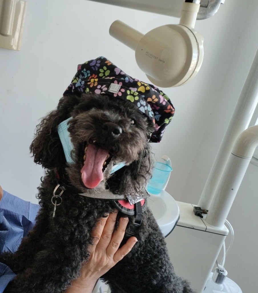«Ενώ εκτός ιατρείου μπορεί να είναι επιφυλακτική και να μην πλησιάζει εύκολα ανθρώπους, μόλις καθίσει κάποιος στην οδοντιατρική καρέκλα, καταλαβαίνει ότι τώρα δουλεύουμε και ακολουθεί μόνη της όλο το πρωτόκολλο. Κατά τη διάρκεια της συνεδρίας μένει εντελώς ακίνητη, όσο κι αν αυτή διαρκέσει. Όταν τελειώσει η διαδικασία, είτε ακούγοντας από μένα το “ Άριελ κατέβα”, είτε μόλις αφαιρεθεί το προστατευτικό κάλυμμα από τον ασθενή, καταλαβαίνει ότι τελειώσαμε και κατεβαίνει μόνη της», λέει η οδοντίατρος.