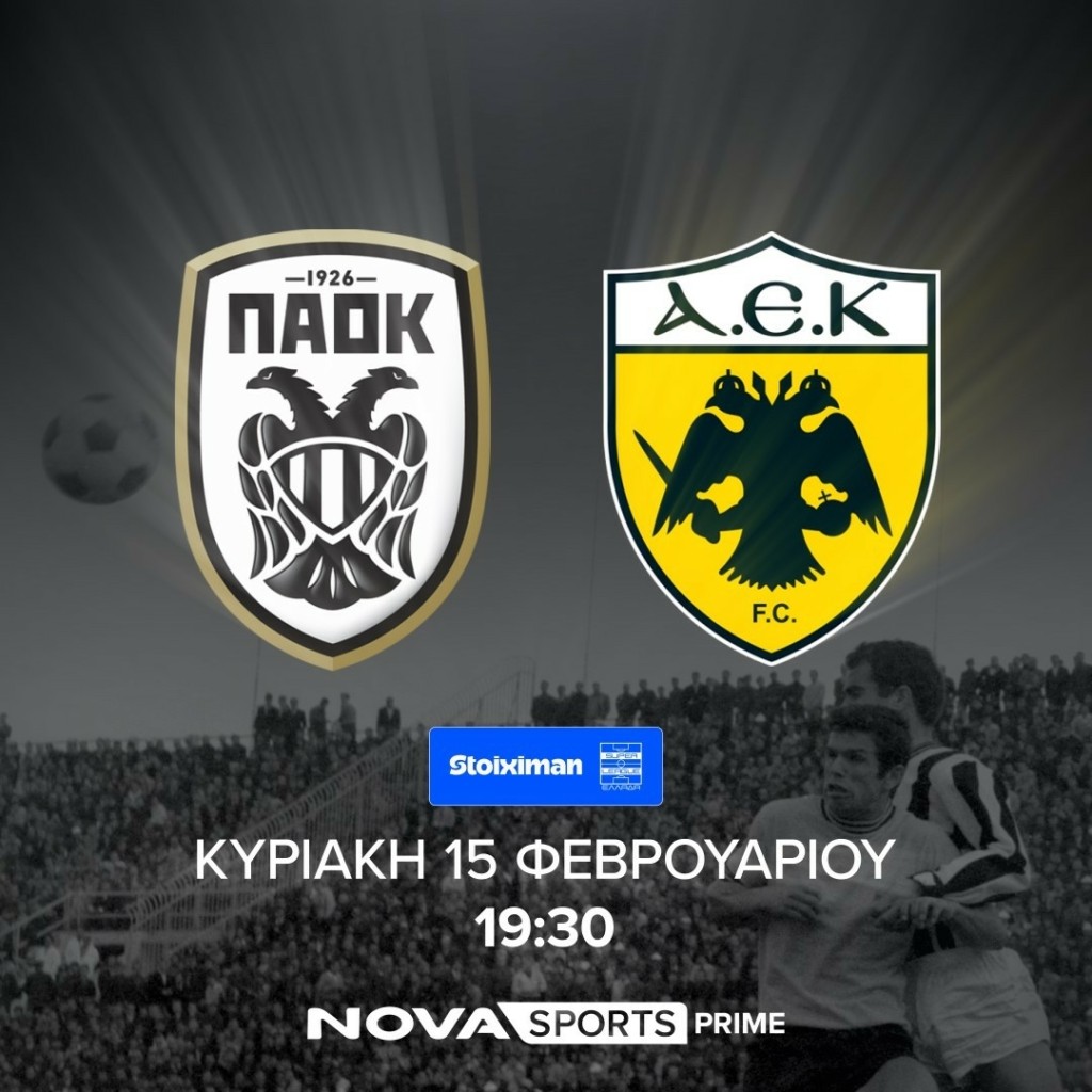 19:30 Stoiximan Super League: ΠΑΟΚ-ΑΕΚ Novasports Prime σε περιγραφή του Ηλία Βλάχου και ρεπορτάζ των Κωστή Μπότσαρη και Γιώργου Βασιλείου