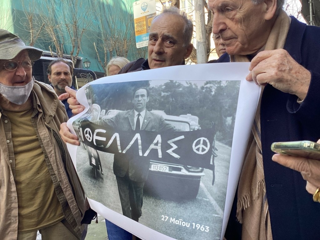 Μέλος της τότε «Νεολαίας Λαμπράκη» (αριστερά) παρακάλεσε τον Κώστα Γαβρά να ξεδιπλώσει τη γνωστή φωτογραφία του δολοφονημένου βουλευτή κατά την «Πορεία Ειρήνης»