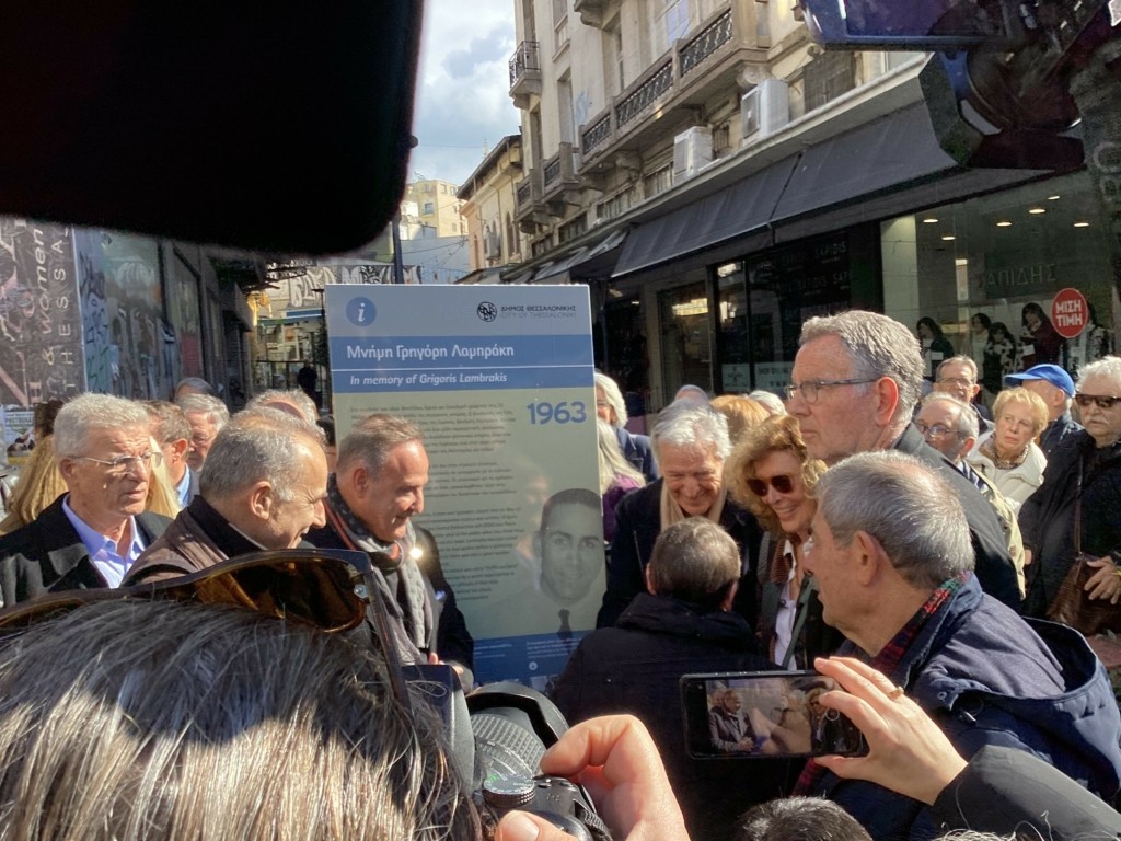Τον σκηνοθέτη υποδέχθηκαν ο Δήμαρχος Θεσσαλονίκης Στέλιος Αγγελούδης και ο πρόεδρος του Δημοτικού Συμβουλίου Σπύρος Βούγιας, με τον πρώτο να προσφωνεί τον Κώστα Γαβρά, στο σημείο «Ζ». Ουσιαστικά, τον ευχαρίστησε για την προσφορά στη μνήμη της πόλης, με την ταινία του, αλλά κυρίως για τη σημαντική βοήθεια του στην επιβίωση των δημοκρατικών ιδεών. Συγχρόνως, τού ευχήθηκε για τα γενέθλιά του, καθώς η 12η Φεβρουαρίου συνέπεσε να είναι η ημερομηνία της γέννησής του, στην Αρκαδία. Αντιφωνώντας, ο πολυβραβευμένος Έλληνας σκηνοθέτης, ανέφερε ότι η ταινία «Ζ», ως σύμβολο του Λαμπράκη, ο οποίος συνεχίζει να είναι ζωντανός, μέσω των ιδεών του, είχε αυτόν ακριβώς τον στόχο: να δείξει ότι ακόμη και μετά τη βάρβαρη δολοφονία, οι ιδέες του βουλευτή συνεχίζουν να ζουν και να φωτίζουν ως σήμερα τον δρόμο της δημοκρατίας.