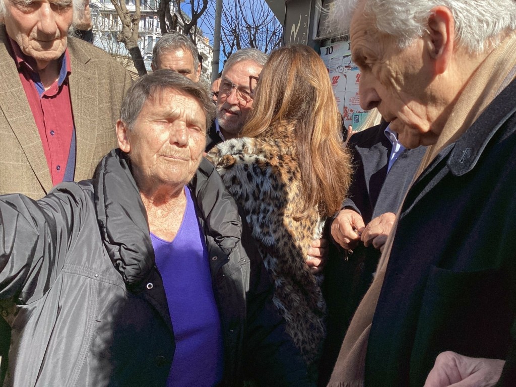 Πάντως, η ουσιαστικότερη και συγκινητικότερη στιγμή της σεμνής τελετής ήταν η συνάντηση του Γαβρά με τους αυτόπτες μάρτυρες της δολοφονίας, την Καίτη Τσαρουχά, γραμματέας της οργάνωσης τότε, αλλά και κόρη του τραυματισμένου την ίδια νύχτα( και δολοφονημένου από την χούντα), βουλευτή Καβάλας, Γιώργη Τσαρουχά. Δίπλα της ο Σπύρος Σακέτας, μέλος της οργάνωσης, σε ρόλο σωματοφύλακα την αποφράδα νύχτα, αλλά και διαχρονικά σεβάσμια παρουσία στον χώρο της Αριστεράς. Με ζωντάνια έδειξαν στον σκηνοθέτη τη διαμόρφωση του χώρου, τις οδούς Ερμού, Βενιζέλου και Σπανδωνή, οι οποίες συναντιούνται στο σημείο της δολοφονίας και το σημείο απ’ όπου εφόρμησε το τρίκυκλο και αυτό στο οποίο δέχτηκε το χτύπημα ο Λαμπράκης.