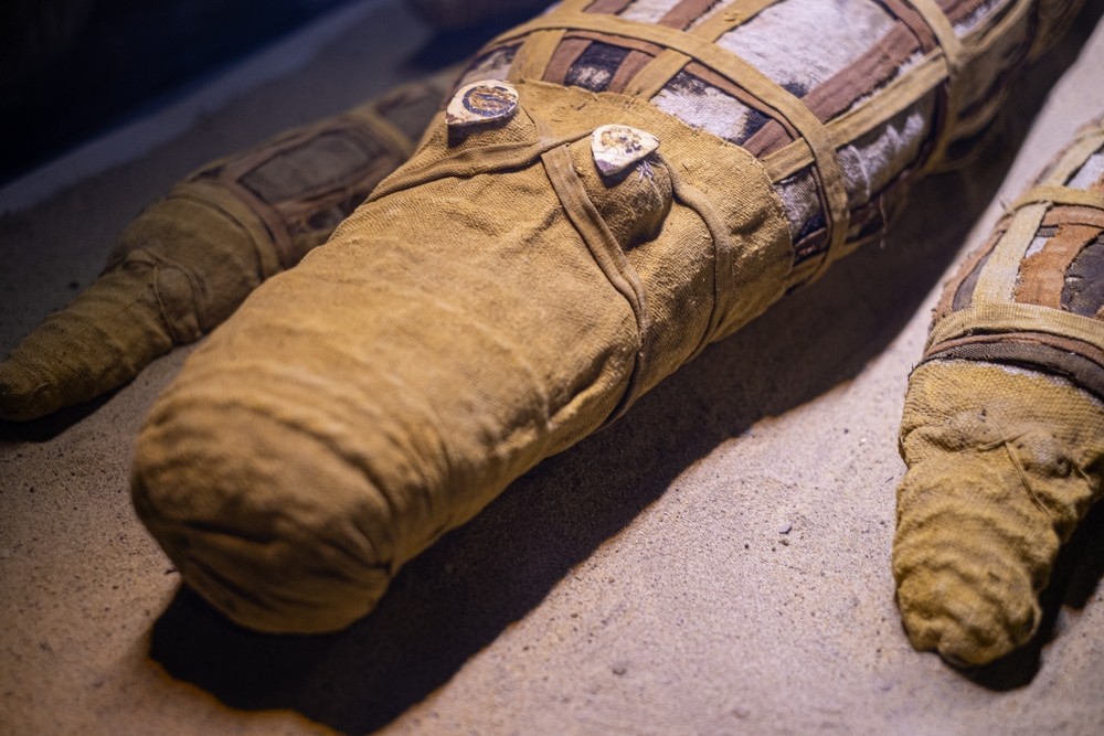 Περισσότερες από είκοσι μούμιες εκτίθενται σε ειδικά διαμορφωμένο χώρο, τοποθετημένες πάνω σε αμμώδη επιφάνεια μέσα σε γυάλινη προθήκη. Η εικόνα είναι επιβλητική και ταυτόχρονα αποκαλυπτική για τη σημασία που είχαν αυτά τα ζώα στη θρησκευτική ζωή της αρχαίας Αιγύπτου. Στον ίδιο χώρο παρουσιάζονται επίσης σαρκοφάγοι, μικρά φέρετρα, ακόμη και έμβρυα και αυγά κροκοδείλων.