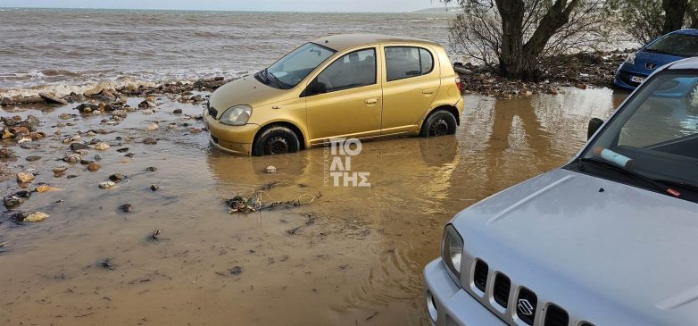 Επιβαρυμένη είναι η κατάσταση στην περιοχή του αεροδρομίου με δεκάδες Ι.Χ. κατά μήκος του δρόμου να είναι έρμαια των κυμάτων. Στην περιοχή ξεριζώθηκαν και δέντρα δίπλα στη θάλασσα.
