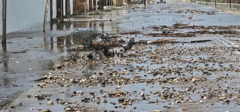 Η εικόνα στο παραλιακό μέτωπο της πόλης ήταν πρωτοφανής. Ο δρόμος στον Βροντάδο είναι εξαιρετικά επικίνδυνος με το οδόστρωμα να έχει γεμίσει με πέτρες και φύκια.
