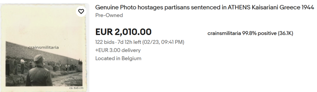 «Κόπηκε» η δημοπρασία των φωτογραφιών από την εκτέλεση στην Καισαριανή στο eBay, που προκάλεσε σάλο αντιδράσεων στη χώρα μας.
