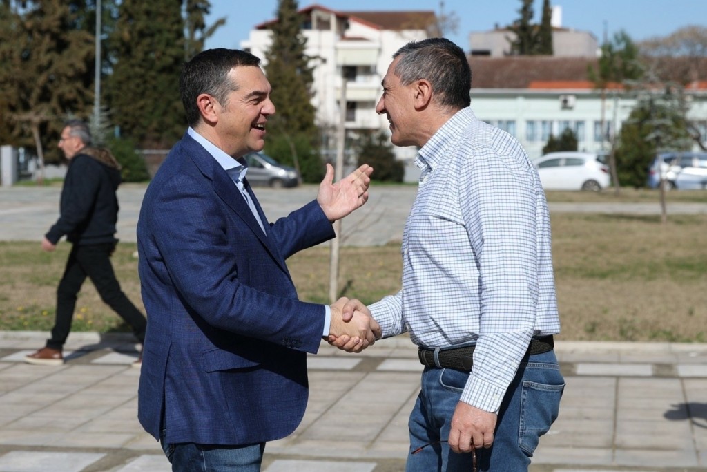 Τον Αλέξη Τσίπρα συνόδευε ο πρώην δήμαρχος Λαρισαίων Απόστολος Καλογιάννης.