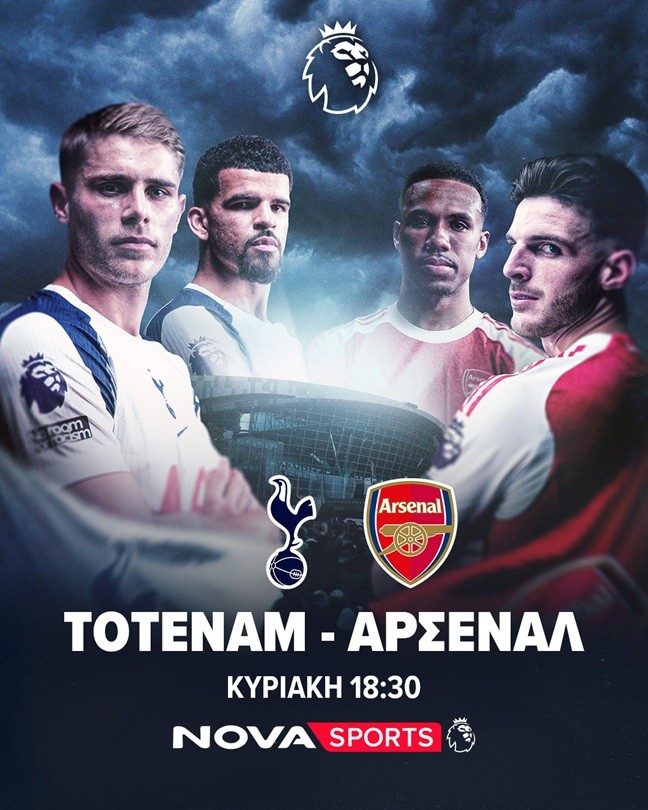 18:30 Premier League: Τότεναμ-Άρσεναλ Novasports Premier League σε περιγραφή του Χρήστου Σωτηρακόπουλου