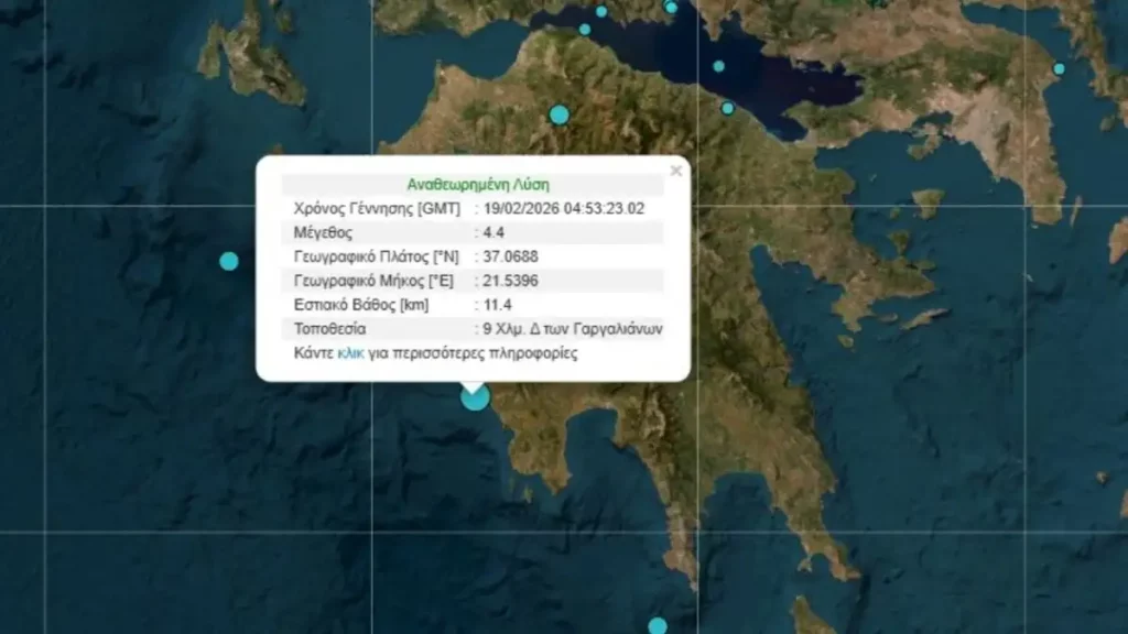 Η σεισμική δόνηση καταγράφηκε στα Φιλιατρά στη Μεσσηνία και σύμφωνα με το Γεωδυναμικό Ινστιτούτο, είχε μέγεθος 4,4 βαθμών της κλίμακας Ρίχτερ.