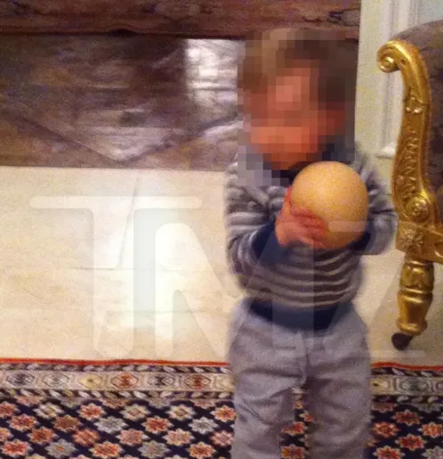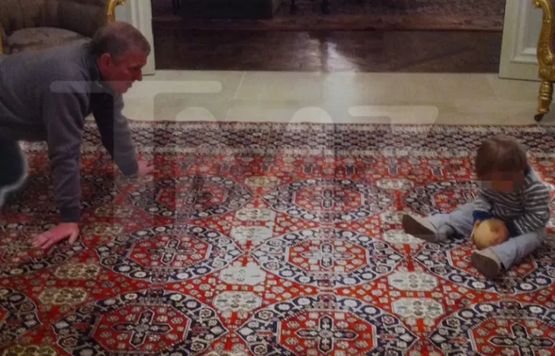 Οι φωτογραφίες, που φέρεται να τραβήχτηκαν το 2011, δείχνουν τον τότε πρίγκιπα σκυμμένο απέναντι από το παιδάκι πάνω σε χαλί, να του κυλά την μπάλα.