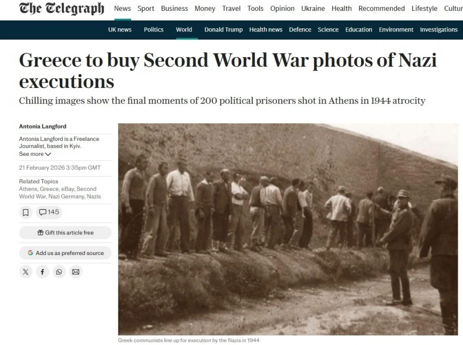 Η βρετανική The Telegraph αναδεικνύει την υπόθεση ως μια ιστορία που ξεπερνά τα ελληνικά σύνορα, εντάσσοντάς τη στο ευρύτερο ευρωπαϊκό πλαίσιο μνήμης του Β’ Παγκοσμίου Πολέμου.